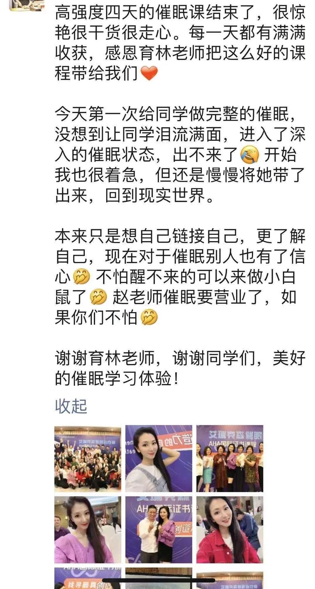 02 为什么要学习NLP Why NLP? 美国《时代杂志》 NLP是解决个人潜在问题的全新方法,它帮助你潜移默化地进入内心,进行全方位的自我改变。NLP拥有无限的可能性,它已转化成一种全功能的提升法门和技巧。 美国《读者文摘》 NLP决不能被等闲视之。其强劲的理论基础,显示出其为一个意图将语言学、身体语言学和传达沟通研究结合,并将之调和与系统化的专门学科。 NLP深入研究身心、语言和思维如何工作,如同计算机程序可以更改,只有不断地升级我们的大脑程序,才能与世界保持理想的关系。 如果说互联网改变了人类的生活方式,而NLP则改变人类的思维模式。 03 谁学过NLP? Who studied NLP? 克林顿、奥巴马、比尔盖茨、乔丹、阿加西、安东尼-罗宾均学习过NLP,NLP发现了思维和情绪的规律,知道如何让理性、感性协调一致、身心合一。NLP重在语言、身心和信念系统做工作,让你学会掌握运用大脑操作系统,赋予你经常达到自我最佳状态的能力。NLP是发现和创造和谐自己身心,再和谐他人和世界的神器。NLP最神奇的地方就是:只要你坚持“异想天开”,那么你就真的能美梦成真! 04 陈育林 导师介绍 Who is Chen YuLin? 主讲导师:陈育林 毕业于南昌陆军学院,多年来专注于学习神经语言程式学(NLP)和策略派催眠等实用心理学,主要师从华人NLP泰斗张国维博士、美国NLP大学罗伯特.迪尔茨(Robert Dilts)和苏茜.史密斯(Suzi Smith)女士、著名催眠大师斯蒂芬.吉利根(Gilligan)博士等世界顶尖老师。陈育林导师秉持终身学习和不断前进的信念,具有精益求精的工匠精神。长期在国外游学,两次去到美国NLP大学学习和担任助教。 他于2013年创立了“中美NLP学院”知名NLP传播平台,目前在中国有50个城市联盟机构。他深受华人NLP泰斗张国维博士的亲笔推荐,被誉为中国最具影响力的NLP新生代导师。陈育林导师对学生充满热情,课堂生动有趣,互动性很强,深受广大学生喜爱。他最具盛名的是教授NLP专业课程体系,一年最多开设10期NLP国际执行师文凭班,是目前国内单年授证最多的NLP导师。 陈育林导师立志打造中国最好的NLP传播平台,让更多人的人生因学习NLP而发生改变,同时也用心在培养更多的NLP导师,去传播这门智慧的学问,就像“花婆婆”一样将花的种子洒满世界各地。 陈育林老师在美国NLP大学担任助教视频 陈育林老师的著作:《他人很重要》 05 为什么要报 陈育林课程 Why is Chen YuLin? 超级六重礼 第一重 免费获得美国NLP大学原版翻译教材一套,超200页详尽技术,国内正式首发,价值巨大。 第二重 送线上执行师课程大礼包,价值19800元,24节视频永久回看。让你真正玩转NLP。 第三重 美国NLP大学原汁原味授课,让你体验世界最先进的NLP教学,其他体系学费一般30000+人民币,目前只要19800人民币。 第四重 送200张课程PPT,助你导师梦成真。 第五重 送10节价值9800元的隐喻大师音频课,内含101个隐喻故事,催眠故事信手拈来。 第六重 终生免学费复读,每期30%左右知识点更新,深度浸泡式学习,自由灵活、快速成长。 06 课程大纲 Syllabus 07 课程收获 Course harvest 学会如何更好的管理自己和他人的情绪 学到完整的、有体系的语言运用,与伴侣、父母、孩子和同事保持良好沟通 学会规划人生,更有效地推动人生进步 提升更强的觉察力,发展全面平衡的意识能力 掌握道术结合平衡的心理学培训技巧,助力个人职业发展 通过全方面深度的语言专业训练,成为真正的语言大师 改进心智模式,通过使用卓越的策略,获取未来的美好目标 课程地点:福建省漳州市高峰谷风景区 原价:22800元/人 报名费 限时优惠:19800元/人 一次报名,永久免学费复训! 福利:报一送一,送《艾瑞克森催眠治疗师-AHA国际证书班》或《积极心理学咨询师证书班》,二选一 2022年9月8日-11日(第一阶段) 2022年10月6日-9日(第二阶段) 2022年11月10日-13日(第三阶段) (分三阶段,共12天) 报名咨询:请联系您的中美NLP学院服务人 执行师是我一生中最喜爱的课程,它涵盖了一个人一生当中最需要的技巧与智慧。遇到生命无限的可能性,就是从遇见执行师开始。因为,生命是用来学习快乐的,人生就是用来赢的。 全国第35期NLP专业执行师课程快讯(北京)! 全国第29期NLP专业执行师课程快讯(北京)!